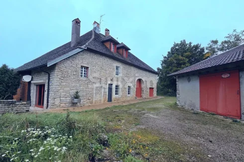 On the first Jura plateau, 11 kilometers from Poligny and 14 kilometers from Champagnole, come discover this superb 18th-century property with outbuildings and a wine cellar.