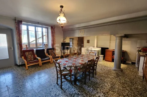 A few kilometers from Poligny, this large 18th-century stone building is located in the heart of a quiet, leafy village. Originally a family home, this property is currently divided into three independent dwellings: