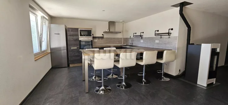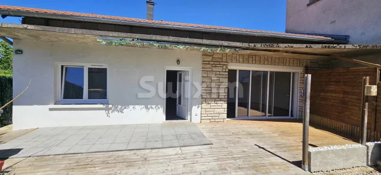 Ref 19189LG: In the heart of the village, single-story semi-detached house comprising 3 bedrooms, fitted kitchen opening onto a large living room opening onto the terrace, 2 shower rooms, separate toilet, storeroom, laundry room, convertible attic, courtyard and garage. Independent Swixim sales agent in your area: Fees payable by the seller - Laurent GENTY - Sales agent - Registered trader - RSAC / Lons Le Saunier