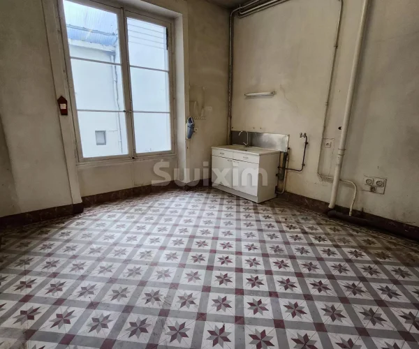 In need of renovation, it consists of a large retail space at the front door and a spacious and bright 5-room duplex apartment. This apartment could be divided into several apartments.