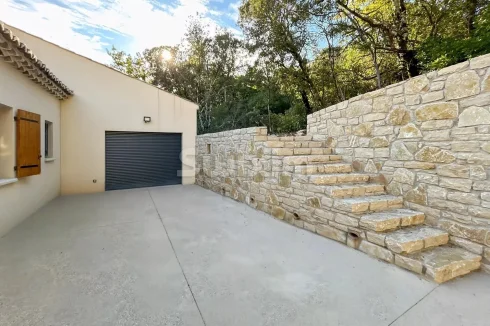 Ref: 2358FB. Goudargues area. Nestled in a natural environment, this villa combines the charm of stone with contemporary design. Located in a typical Cèze Valley village, just a stone's throw from the river, it offers a rare and peaceful living environment. Elegantly designed, the house features generous volumes and plenty of natural light. The 70 m² living room opens onto an unoverlooked panoramic view, creating a true indoor/outdoor continuity. It also features :