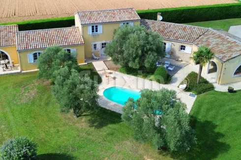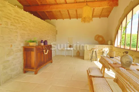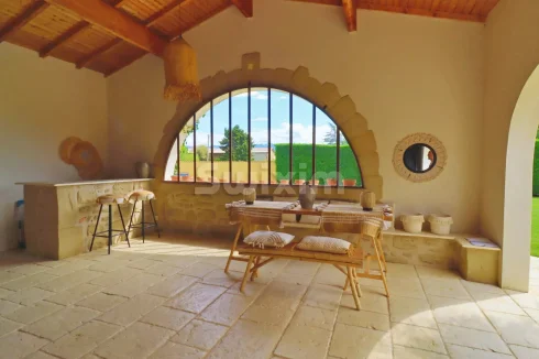 The 2,690m² landscaped garden, with automatic irrigation using water from the Bourne River, features a 32m² swimming pool and beautiful olive trees around it.