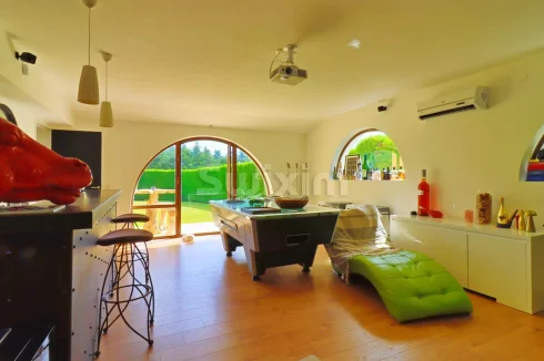 Finally, a large living room of over 36m² with a home theater, billiards table, bar, and a beautiful terrace.