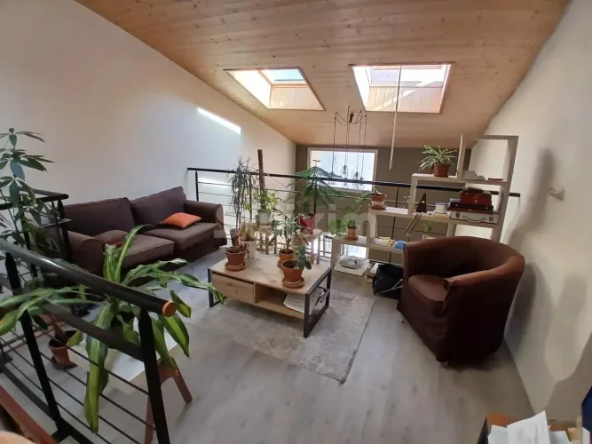 Upstairs, 1 fitted kitchen opening onto the dining room, 1 large living room and 1 toilet.