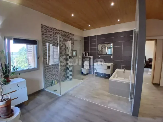 First floor: 1 bedroom with 1 shower room and small dressing room, 1 laundry room, 1 large bedroom with 1 shower room/toilet and 1 independent entrance.