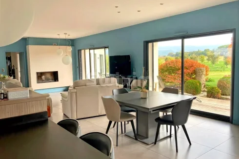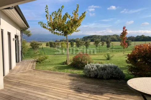 Ref 70182VL: Architect-designed house located in the commune of Montélier, in a green and peaceful environment, benefiting from a superb unobstructed view of the Vercors. Covering an area of approximately 180m2, you have a large living room (approximately 72m2) bright thanks to large sliding bay windows and a beautiful exposure, arranged with a space dedicated to conviviality (American kitchen type) and a wood-burning fireplace. Next, a closed and fully equipped eat-in kitchen, 3 bedrooms including a master suite (shower and WC), a large bathroom (walk-in shower, double sink), and a room converted into a dressing room (or 4th bedroom). In addition, another living room adjoins the house to be arranged according to your needs and desires (office, workshop, etc.).