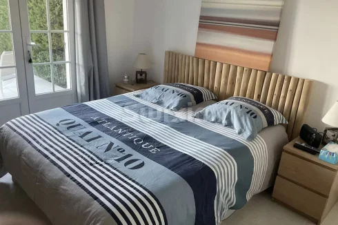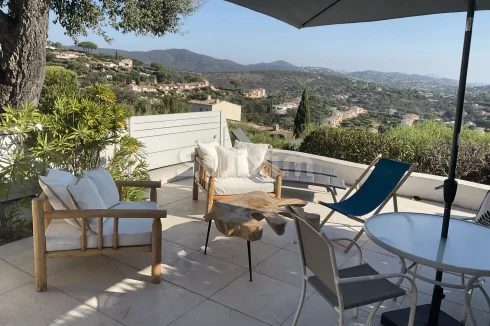 Ref: 69396EP: In the very famous secure domain of GUERREVIEILLE, adorable semi-detached mazet tastefully restored and with quality materials. It is composed on the ground floor of a first terrace and a garden. You enter through the living room and the open kitchen with a Tropezian terrace which offers you a magnificent sea view. On the garden level, 2 bedrooms, a shower room, a separate toilet and a storeroom. In front of these rooms you access the spacious solarium terrace of 35m2, then a private terraced garden and its parking spaces. Very beautiful sea view over the Gulf of SAINT-TROPEZ and the port of SAINTE-MAXIME. In this quiet domain of 34 ha, you benefit from a large swimming pool, with club house restaurant / bar, 3 tennis courts, playgrounds ... Close to the beaches. To visit 7 days a week Agent commercial indépendant Swixim sur votre secteur : Agency fees payable by vendor - Montant moyen de la quote-part de charges courantes 2,520 €/yearly - Montant estimé des dépenses annuelles d'énergie pour un usage standard : 1240€ ~ 1700€ - Evelyne PARADEIS - Agent commercial - EI - RSAC / Fréjus