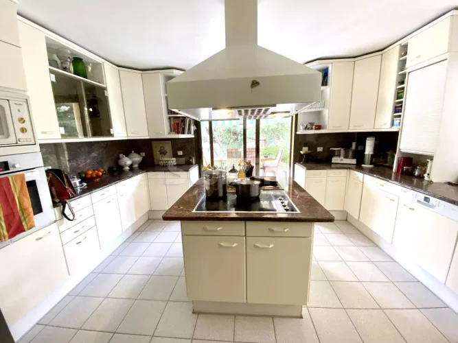 Réf/70135FD Sète Corniche, close to all amenities and five minutes from the beach, nestled in a lush garden of around 2000m2 with intimate spaces and a tiled 10x5 swimming pool, pool house and barbecue, you will be seduced by this large, light property facing south west, comprising a main house with generous volumes: living room with fireplace, underfloor heating, mezzanine, semi-open-plan kitchen, large master suite and three other large bedrooms, study, utility room, workshop, garage and cellar, plus an independent three-room guest house with fitted kitchen and private terrace, plus an independent suite with its own private terrace.