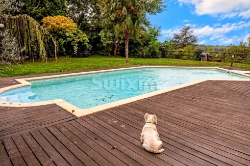 Outside, you'll enjoy a magnificent south-facing space with a terrace, swimming pool, mature garden, and several parking spaces.