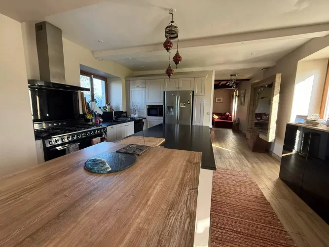 This beautiful, tastefully renovated family home and its independent gîte are located on the edge of a village, in a quiet setting with views of the Pyrenees.