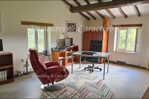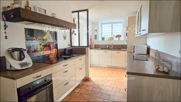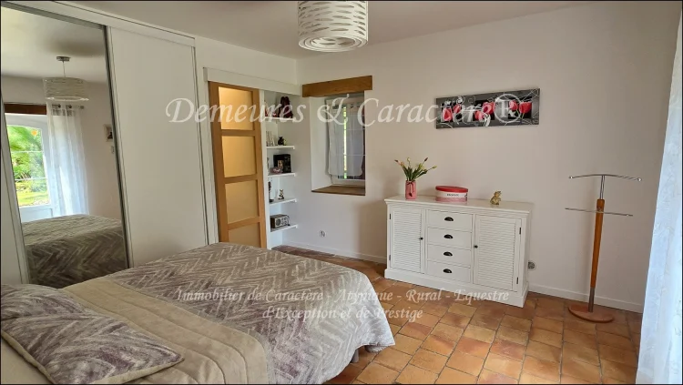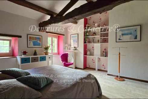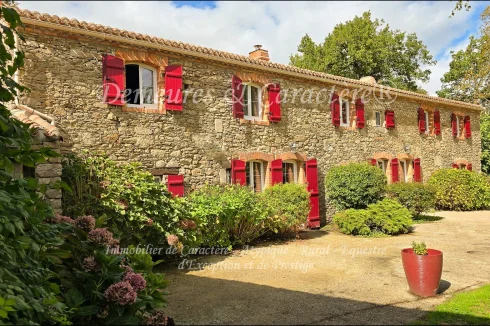 COMFORT AND TECHNICAL FACILITIES: Characterful and high-quality building from the 1730s in excellent general condition, benefiting from regular maintenance and recent modernization work; Tile roof (2015 for the house and 2019 for the barn); Good and superior wall insulation; Mechanical ventilation; Double-glazed PVC openings from 2019 (partly OB and partly equipped with mosquito nets); Aluminum shutters from 2019; Hydraulic central heating and hot water production by ATLANTIC air/water hybrid heat pump from 2023; SINEOS F wood stove from 2021 for pleasure fires (and very good inter-seasonal heating); Low energy expenditure (DPE = C); Drinking water from the public network; 5/6 bedrooms, 3 bathrooms, 2 showers, 1 toilet, 5 toilets; Compliant autonomous sanitation; Remote-controlled aluminum gate; Videophone; Access road and parking in asphalt (2022); Exterior lighting of accesses; ...; Neat and fenced park with small secure lake; Fully fenced property (2018); Bright residence, living rooms facing East / West; 5 of the bedrooms are advantageously exposed (master suite on the ground floor to the Northeast and 4 other bedrooms to the East); Terraces all exposures (115 + 15m2); House of character skillfully combining authenticity (exposed stone facades, old terracotta floor tiles, monumental fireplace, exposed beams, ...) and modern comfort (double glazing, aluminum shutters, heat pump, ...); File of invoices from local craftsmen (maintenance, renovation and modernization work) for more than 200kEUR for 8 years; Very quiet site without nuisance or vis-à-vis nevertheless benefiting from all amenities very close in an area offering an excellent