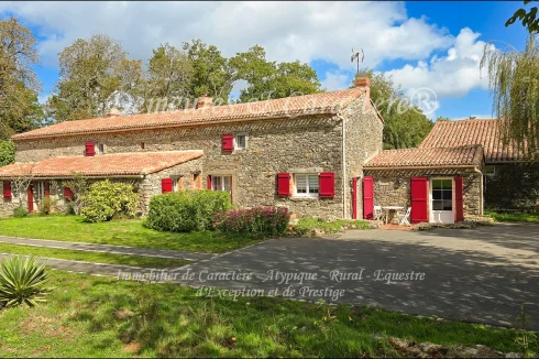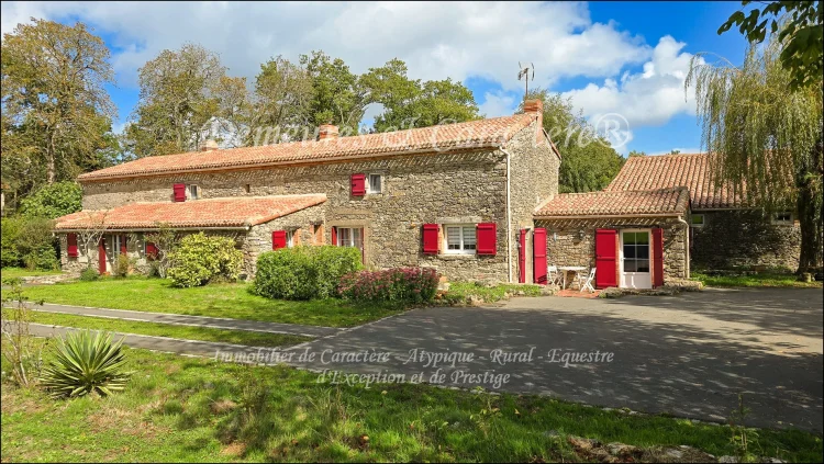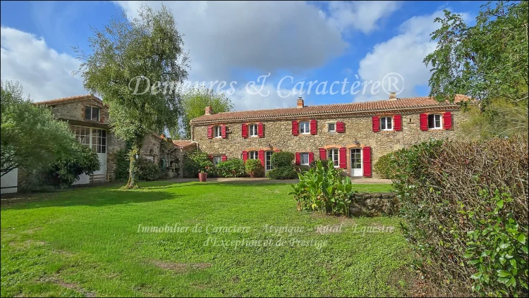44 / 85 Property on the borders of Loire-Atlantique and Vendée, beautiful living environment and absolute tranquility, 1km from all services and amenities (schools, colleges, daycares, medical care, supermarkets, cinema, sports complex, restaurants, etc.), 30 minutes from NANTES (airport) & the beaches, 20 minutes from CHALLANS, LA ROCHE / YON, MONTAIGU, MACHECOUL, ... 1730 residence in perfect condition, 260m² living space (5/6 bedrooms) + utility rooms + large 300m² outbuildings, parking, manicured grounds, meadow, all set on 1.2 hectares of enclosed land, protected from disturbances and unobstructed views. A true haven of peace offering authenticity and modern comfort in a quality environment.