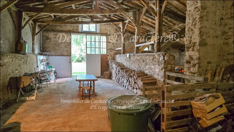 The outbuildings include: Barn (water/electricity available) of approximately 300m² including a workshop, wine cellar, storage cellar, storage space, wood store, pony and goat stalls, etc. Open barn/covered courtyard; Field shelter; ...