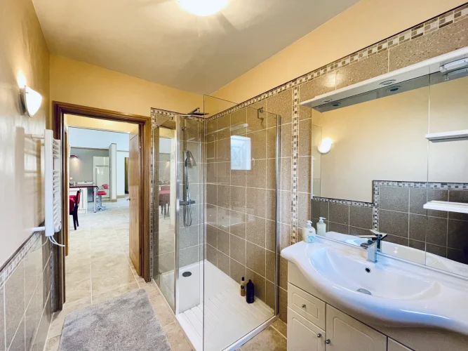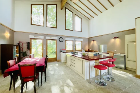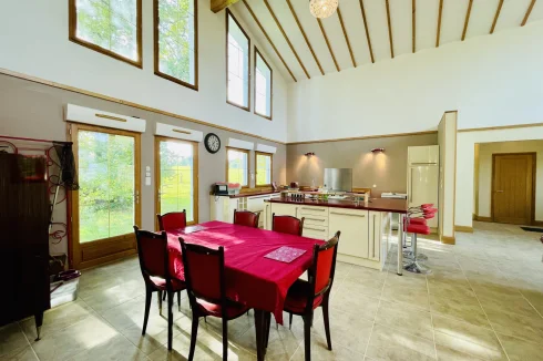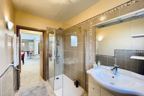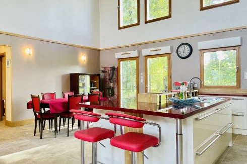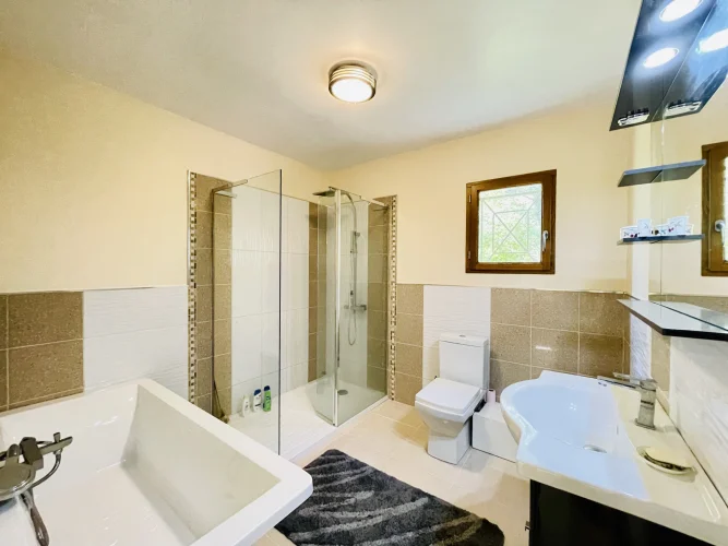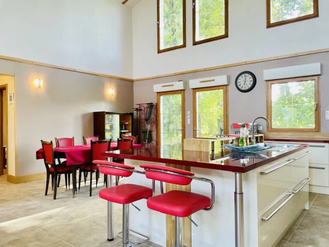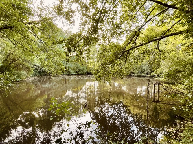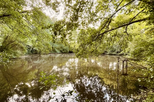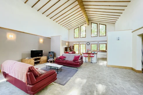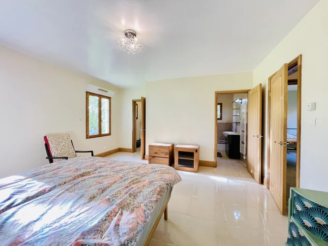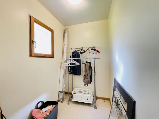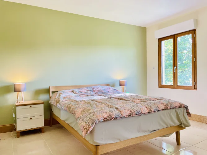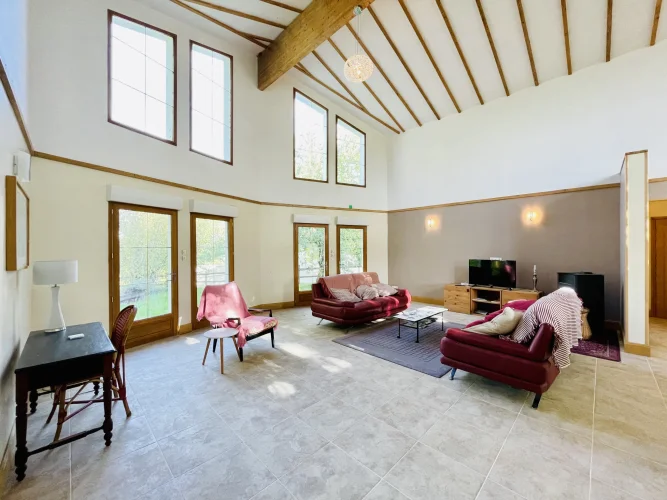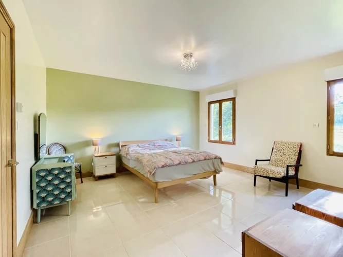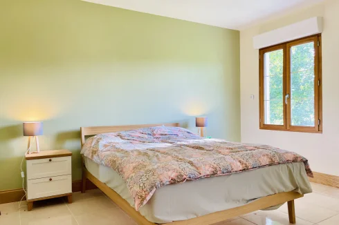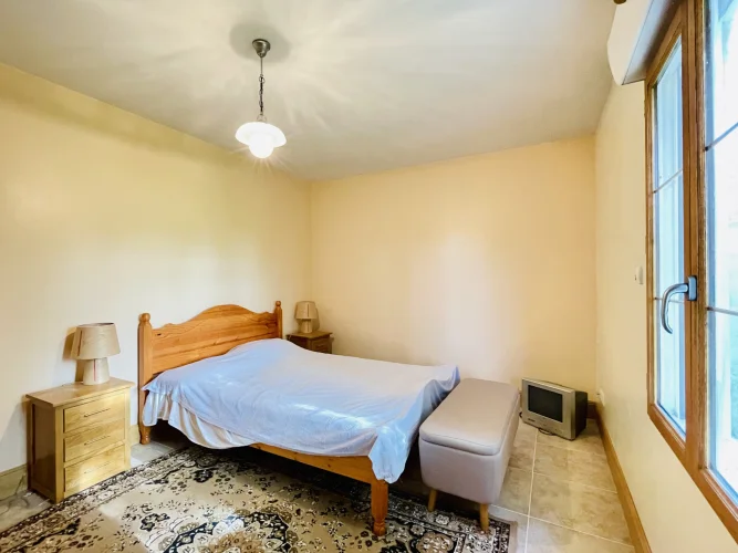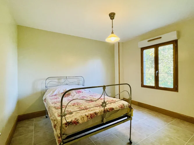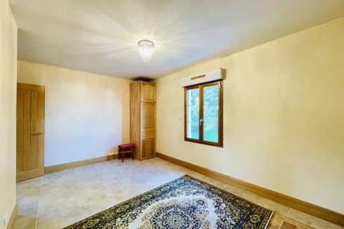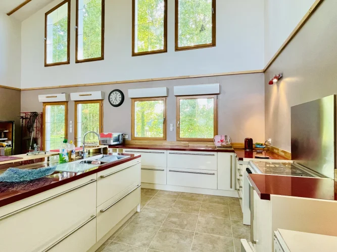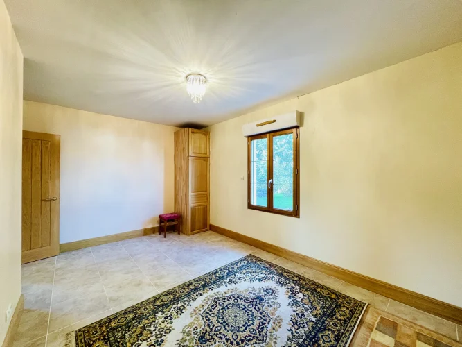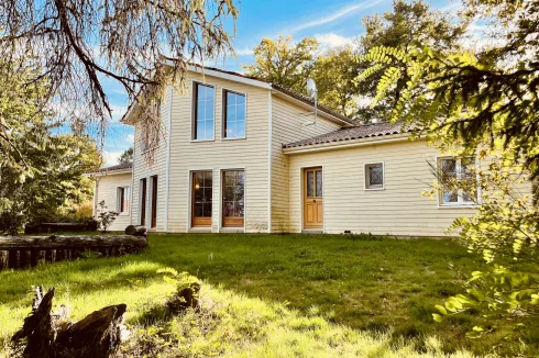 REF. 34893: 194,400 euros HAI, Lessac (16), near Confolens with all shops, in the countryside, quiet, contemporary detached house built in 2007/2008 set on approx 3 acres, for a residential use, approx 157 sqm as livable space, composed on the ground floor : entrance, living room: fitted kitchen/living room, corridor with attic access, 4 bedrooms one with dressing room and shower room/wc with bath, wc, shower room/wc. Geothermal underfloor heating, septic tank. Garage of 41 sqm with wc, attached land + unfenced woods, small pond of approx. 2000 sqm, all set on 12,480 sqm.