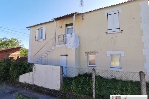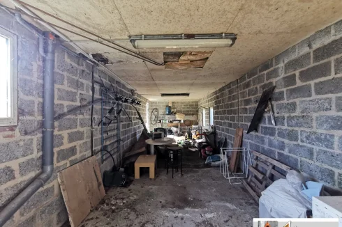 Above, accessible by an external staircase, is a small apartment consisting of a kitchen, two rooms, and a bathroom with toilet. It's currently rented for €300/month, along with a small bicycle storage room.