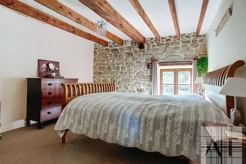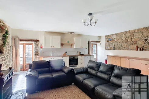 Ready to move into, the property (79,5sqm) features a welcoming open-plan living area and kitchen, beautifully accented with exposed stone walls. Upstairs, you'll find two comfortable bedrooms and a shower room with toilet. The top floor boasts a spacious third bedroom complete with its own bathroom and toilet.