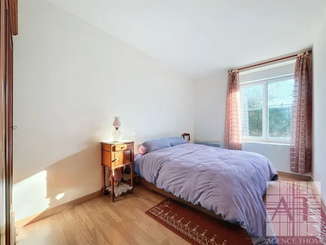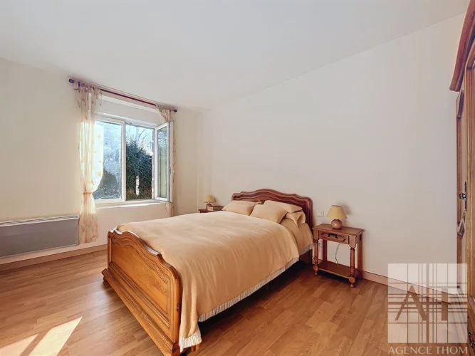 The kitchen, featuring a traditional fireplace, is the perfect spot to enjoy warm and cozy moments around a roaring fire during winter evenings. The bright and spacious living room, bathed in natural light, invites relaxation and conviviality. A hallway leads to a carefully renovated night area, including two bedrooms, a modern shower room with a cabin shower, and separate WC. This level is completed by a pantry and an adjoining outbuilding that has been converted into a garage and workshop, offering extra functionality and the perfect space for DIY enthusiasts or other projects.