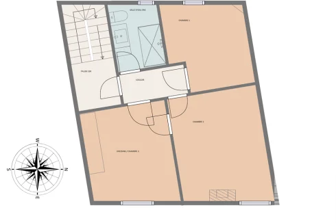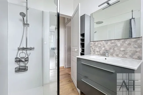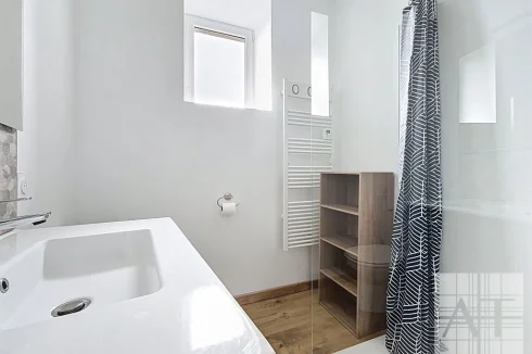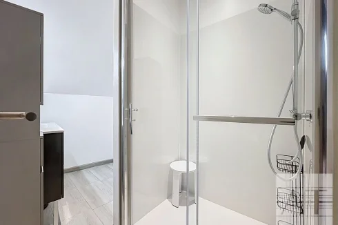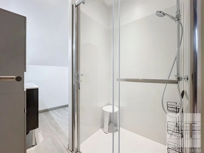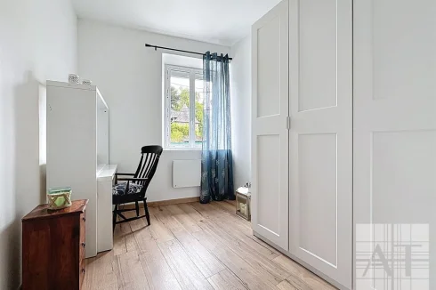 • First floor: Two cozy bedrooms and an additional room currently used as a dressing room, which can easily be converted back into a bedroom if needed. A sleek bathroom with a walk-in shower and WC completes this level.