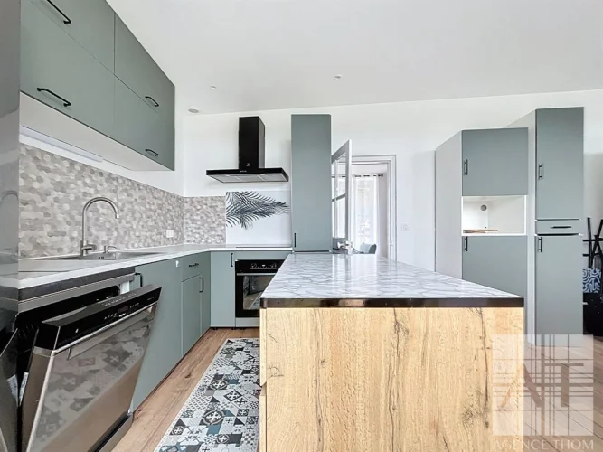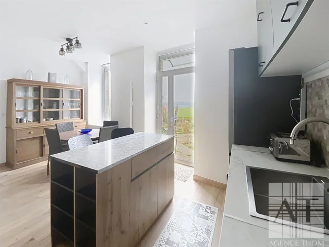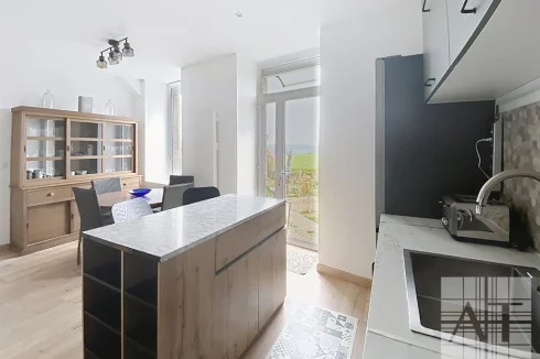 From the moment you step inside, you will be captivated by the bright and inviting atmosphere. The spacious living room flows seamlessly into a modern kitchen with a central island, designed to blend style and practicality. As the heart of the home, this space is perfect for enjoying memorable moments with family and friends.