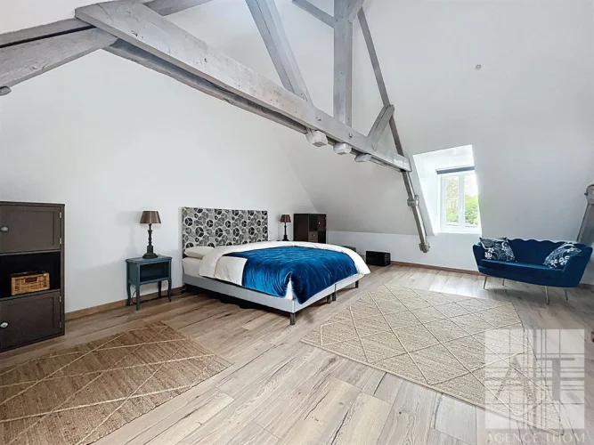 • Second floor: A beautifully converted attic serves as a luxurious master suite with a private bathroom. A peaceful retreat under the eaves, offering space and comfort.