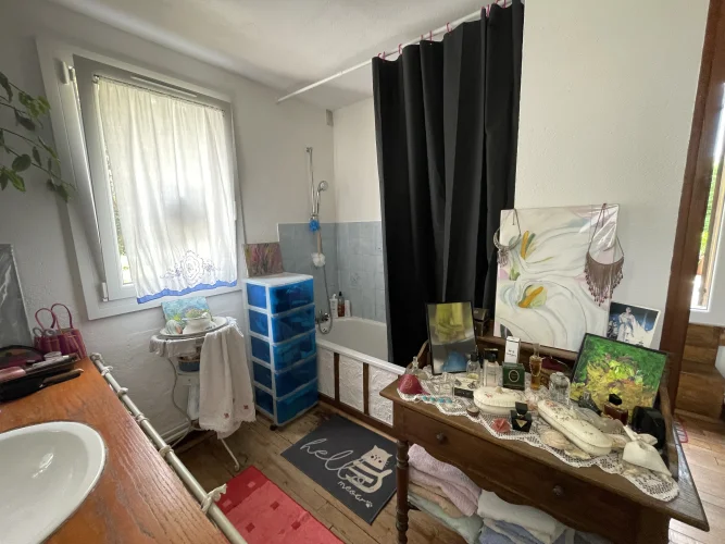 Beautiful stone property, semi-detached on one side, located in a hamlet in the commune of St Genest-sur-Roselle.