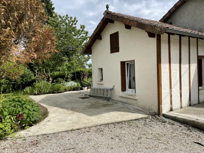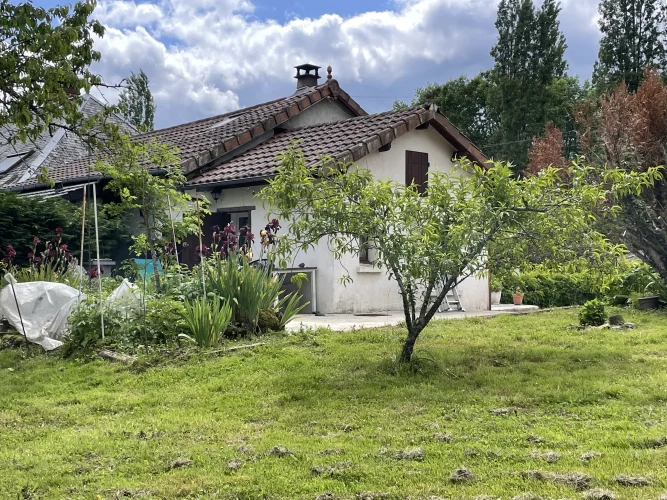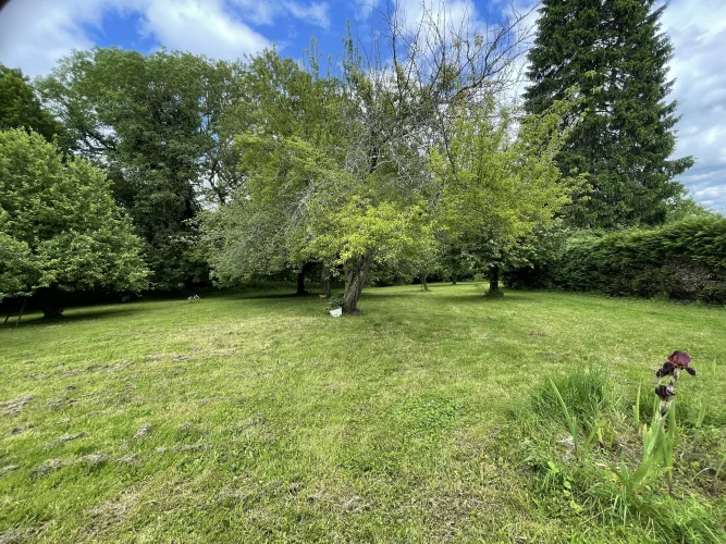 The house is built on a lovely adjoining plot of land planted with trees (many fruit trees), with access to terraces at the front and rear of the house.