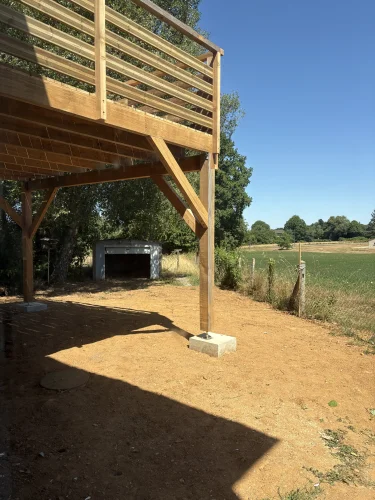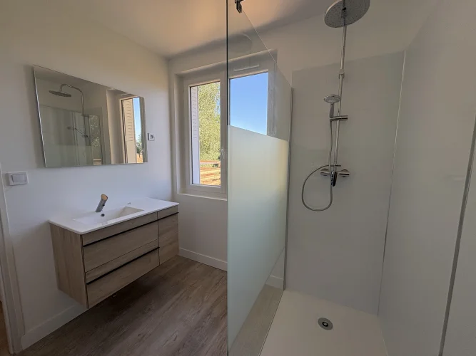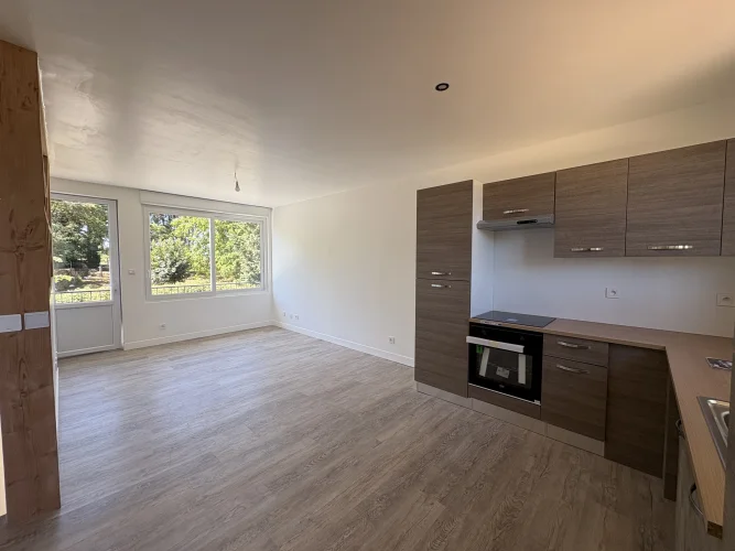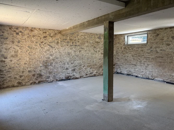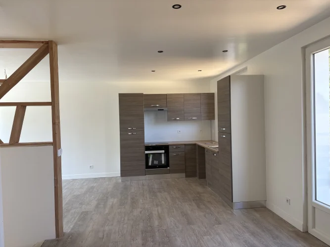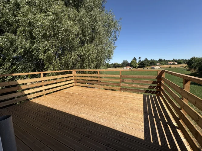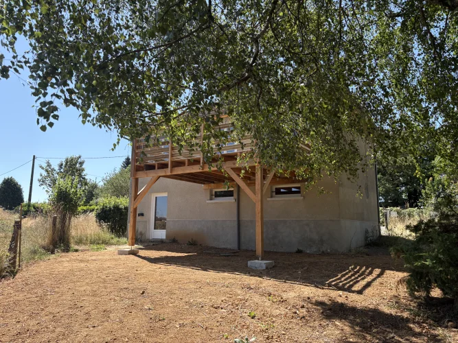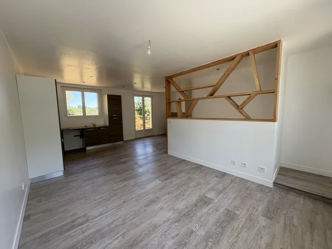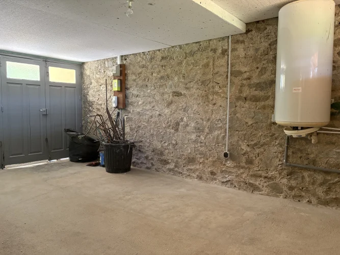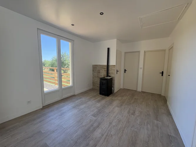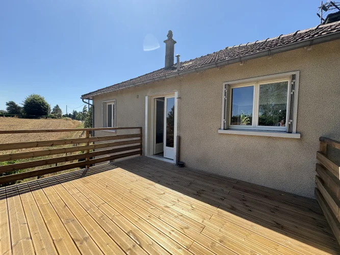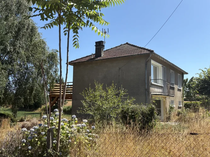 Located in Saint Léonard de Noblat, five minutes from the town center, its shops, and schools; this recently renovated house features a large space on the ground floor with potential for a bedroom and bathroom. A door leads to the rear garden. There\'s a garage. On the first floor: a beautiful living space opening onto a fitted and equipped kitchen, with access to a balcony on one side and a terrace on stilts on the other. Two bedrooms, a shower room, and a toilet. Heating: pellet stove. Attached 1035 sqm fully fenced garden, shed. PVC double-glazed window frames. New individual drainage system.