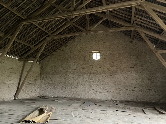 Located in the commune of Saint Martin Terressus, in a hamlet, stone barn with stables on the ground floor and a large 230m² floor space on the garden level. It could be converted into a house. Land in a building zone at the rear. Cadastral area: 1082m². Bounderies have been marked. Information on the risks to which this property is exposed is available on the Géorisques website: