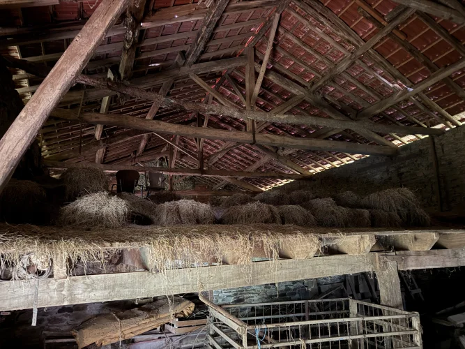 Country house to renovate located in the commune of La Geneytouse, set on a plot of just over 3,400m², in a quiet and green setting. On the ground floor, the house comprises a kitchen equipped with a wood-burning stove that provides heating, a dining room, and an extension to the barn, which includes a hallway, a separate toilet, and a shower room. Upstairs, there are two large bedrooms and access to the attic, which can be converted as needed. The property includes several outbuildings: a large barn adjoining the house on two levels, a former stable located at the rear of the house, and a second, detached barn with a workshop area. The window frames are made of wood with double glazing. The sanitation system and electrical installation require updating. This property is ideal for a main house in the countryside or a second home.