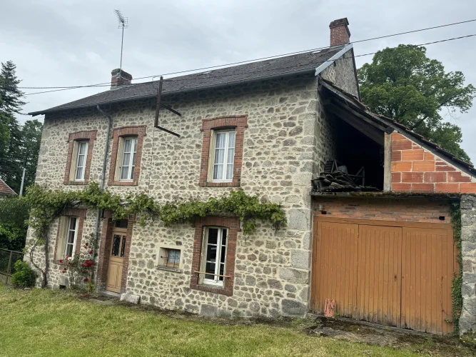 Exclusive! Just 1 hour from Limoges airport, pretty old stone house in a quiet hamlet. Rural area yet only 6 mins from the centre of Saint Dizier Leyrenne, a rural commune with local shops (bakery, convenience store, chemist) but also school, bar, fishing lake... The property is composed of several plots of land including : The house, garage and adjoining garden = 779m2, 2 plots of woodland just outside of the hamlet = 7900m2 and elsewhere but not very far away a large meadow and woodland = 22480m2. The house comprises on the ground floor : kitchen/dining room, bright living room with French doors opening onto the garden, study, wc. A beautiful wooden staircase takes you to the first floor where you have 4 bedrooms, shower room and a staircase to a very large convertible attic. The house has many original features, including old fireplaces and wooden floors. Vaulted cellar, garage and adjoining garden with stunning views over the beautiful Creusois countryside. Heating by wood-burning cooker and electric radiators. Individual sanitation. Fibre optic connection available soon. Direct access to a multitude of footpaths, whether for walking, cycling or horse riding. Contact Sarah Browne on N..B. Information on the risks to which this property is exposed is available on the Géorisques website: (C. envir., art. R. 125-25, I)