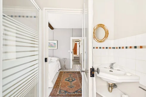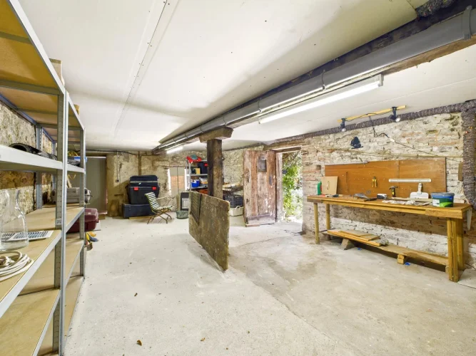 On the ground floor, there's a large entrance hall, a corridor leading to 2 bedrooms each with en suite shower rooms, and a living room overlooking the garden. Upstairs, there's an additional bedroom which could also serve as an office. On the ground floor, a spacious and well appointed kitchen opens onto the picturesque garden with a well. On this level you'll also find a large laundry room with toilet and a cellar ideal for storage with its independent access.