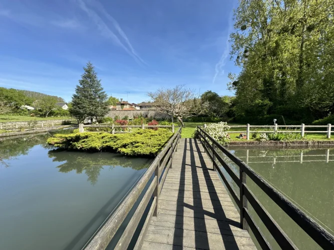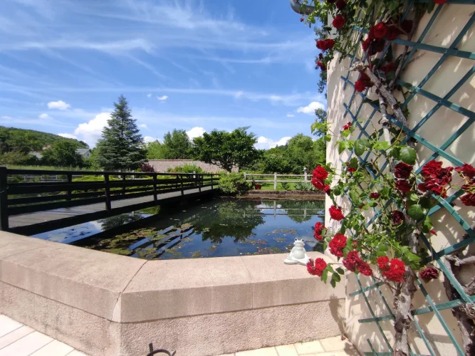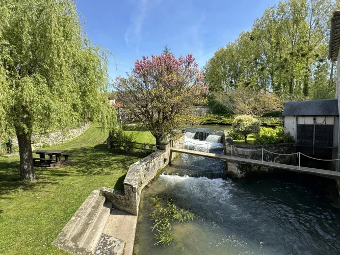 Discover this magnificent residence, once an old mill, offering a bucolic setting and a unique charm. The spacious, light-filled rooms showcase quality materials and a warm atmosphere. Take advantage of the flower-filled terraces, the pond, and the gentle murmur of the water to recharge in the midst of nature. Furthermore, a left wing of the house offers potential for conversion into guest rooms or additional family space. Don't miss out on this opportunity.