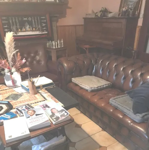 On the Ground floor there is a large hallway with original tiled flooring and you can immediately tell the character of the house. To the left is a kitchen, and to the right a very large office. There are two reception rooms, both with their own fireplaces.