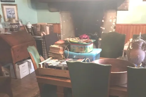 Heating is by wood and by central heating (oil fired radiators). There is an attached garage and barn with boiler room, and a small house (potential renovation project), plus a large workshop.