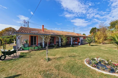 Set in a quiet rural hamlet with views across the countryside. This single storey house has been modernised to provide 156m2, comfortable and spacious accommodation in a mature garden of 2300m2. The house can be divided to offer, on one side - 2 bedrooms, open-plan living space with fitted kitchen, separate dining room and 2 shower rooms and, on the other side - a separate studio apartment with independent access (possible gite business - subject to permissions). The house has full double glazing and heating is via an air source to water heat pump.