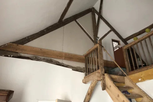 Upstairs the landing and main bedroom have high ceilings into the eaves and the second bedroom has a mezzanine. A dressing/day room compliments the rooms.