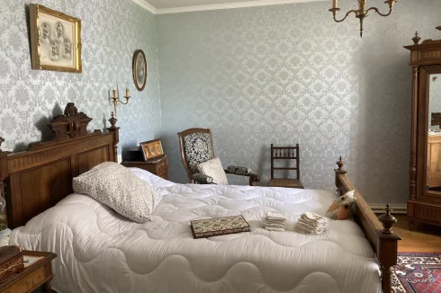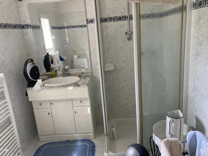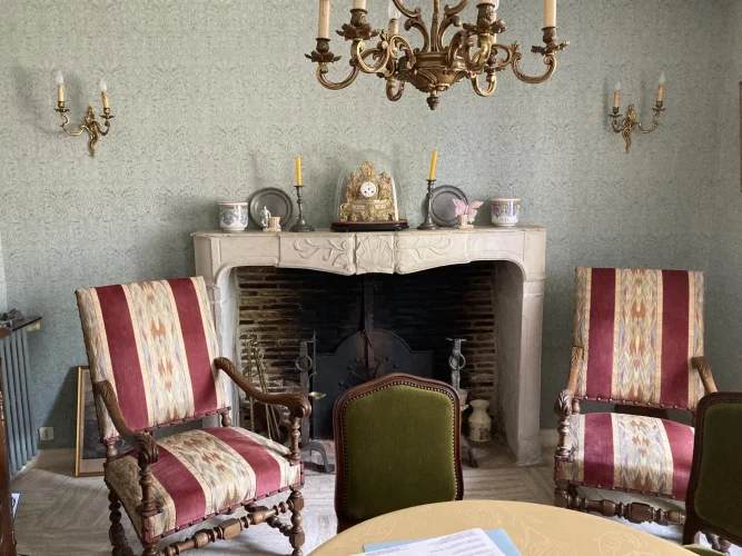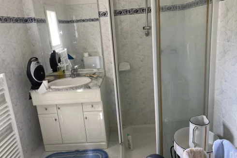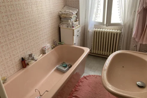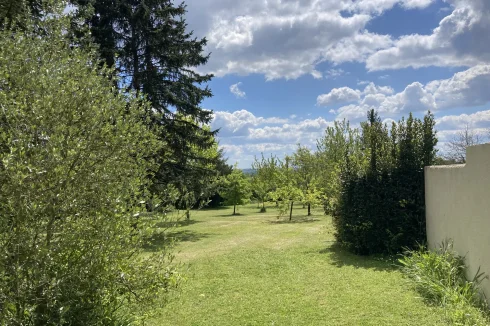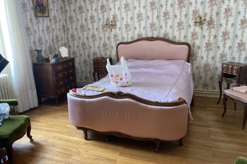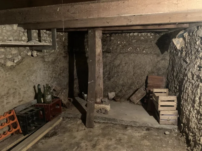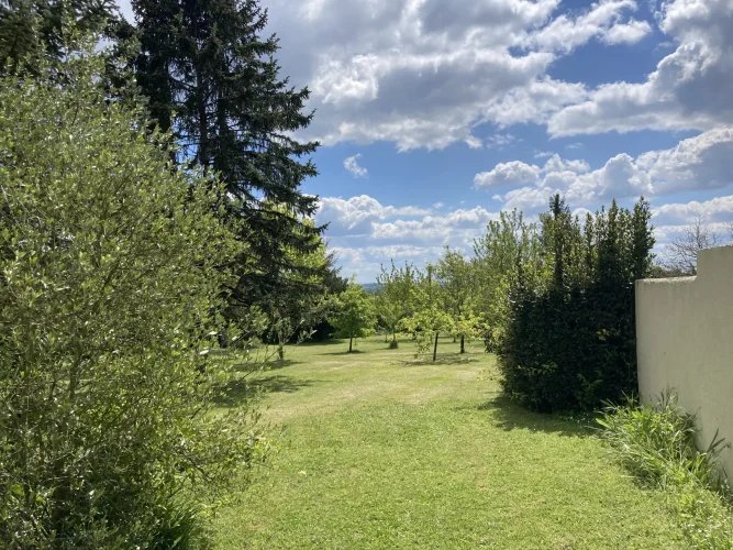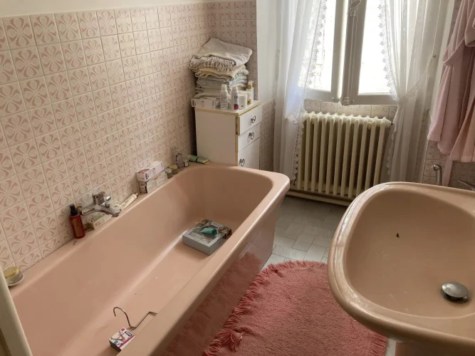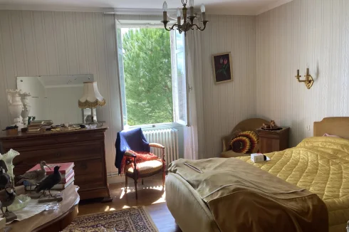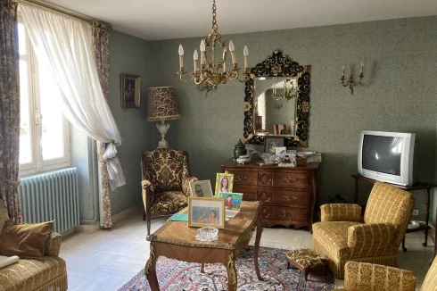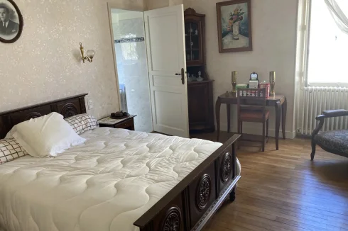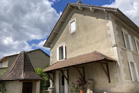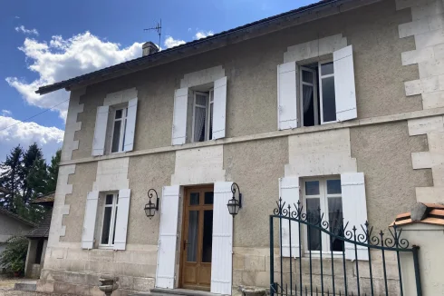 Charming and spacious house, habitable immediately but some updating to do. In the centre of a village with shops and restaurants. On the downstairs level are a kitchen, large sitting/ dining room, a bedroom/study. On the first level 4 large bedrooms, one of which with en suite shower room.
