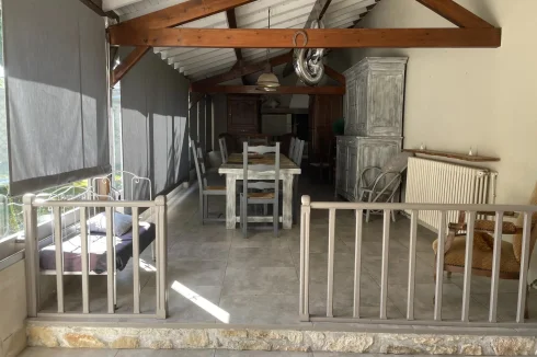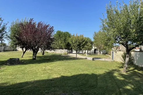 Set in mature gardens overlooking vineyards, the property includes a large conservatory with fireplace, a summer kitchen with shaded terrace, and a variety of fruit trees—perfect for relaxed outdoor living.