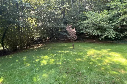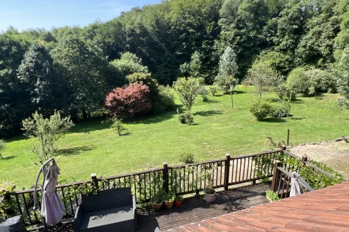 The doors from the dining room lead out on to the most wonderful raised terrace with views across the treetops of your own woodland and the beautiful gardens offering fruit trees, shurbs, further mature trees and a well.