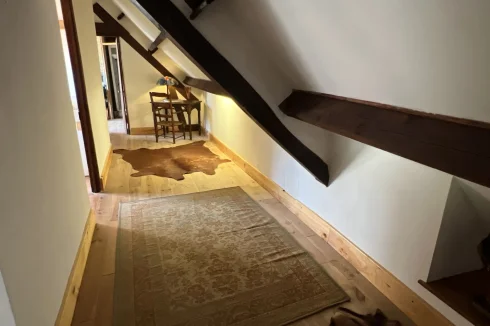 Across the ground floor you have a large farmhouse style kitchen with pellet burner which provides the main soiurce of heating with extra electric radiators as support, adjacent to this is the dining room. Through the inner hall you have a room currently used as an office but it could easily be a 4th bedroom. The wonderful statement living room with fireplace is 40m2.