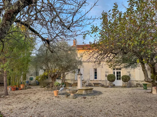 EXCLUSIVE TO BEAUX VILLAGES! Set in a walled courtyard garden, behind tall gates, this handsome Charentaise house offers generous living accommodation and a manageable and pretty landscaped courtyard garden. The historic towns of Jarnac and Cognac are both just a short drive.
