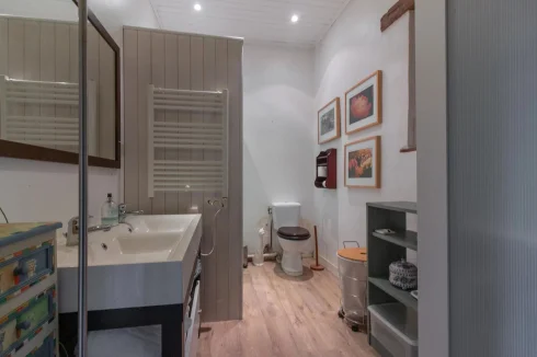 The ground floor has an entrance hall, two spacious reception rooms (each with a fireplace) as well as a very large kitchen (with fireplace) and a utility / laundry room with WC.