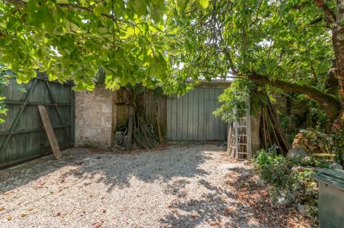 The private south-facing walled garden is a real haven, planted with trees and shrubs - a perfect space for relaxing or entertaining. To one side of the garden is a large garage / outbuilding.