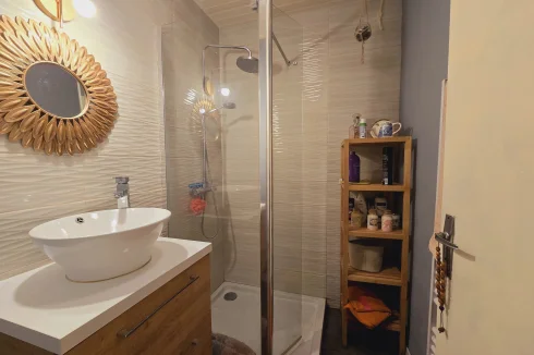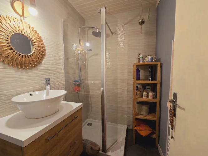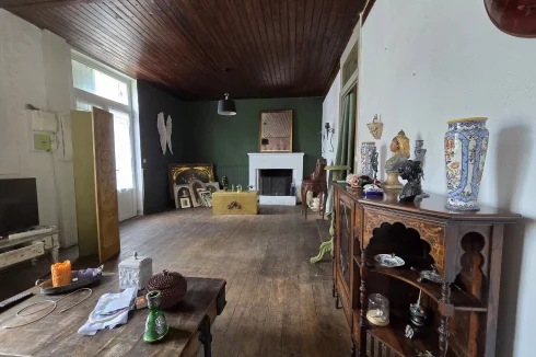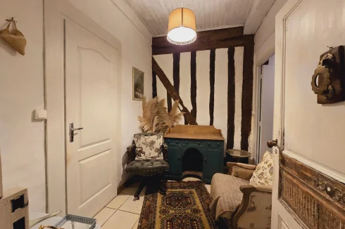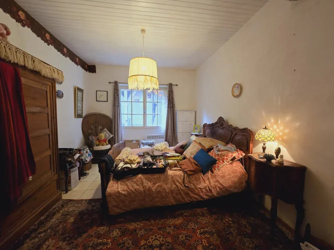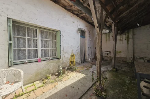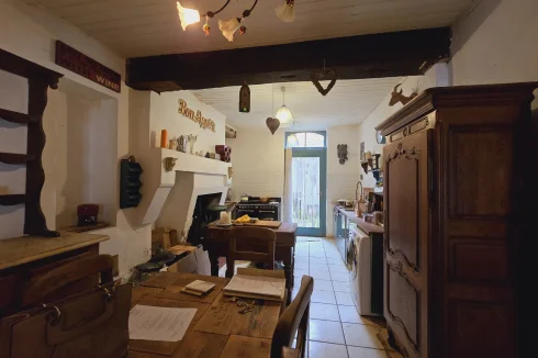 The ground floor boasts a spacious living room featuring a cozy open fireplace, perfect for relaxing evenings. A charming kitchen/dining room, complete with a log burner, opens directly onto a private 25m² courtyard, ideal for outdoor dining and entertaining. Also on this level, you'll find a well-proportioned bedroom, a shower room, a separate toilet, and a versatile space that could serve as a small office.