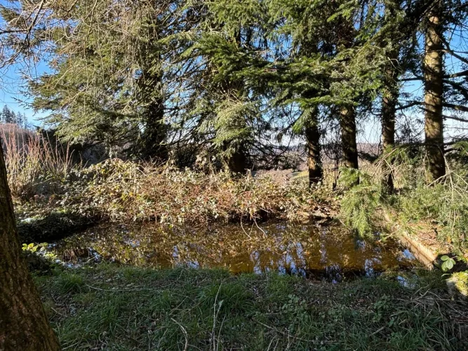 A boiler room attached at the end of the house and a small barn conveniently on your doorstep for storage come in addition to a large hangar just 20 metres opposite, and a meadow descending the valley with a natural spring and fishery on the property itself.