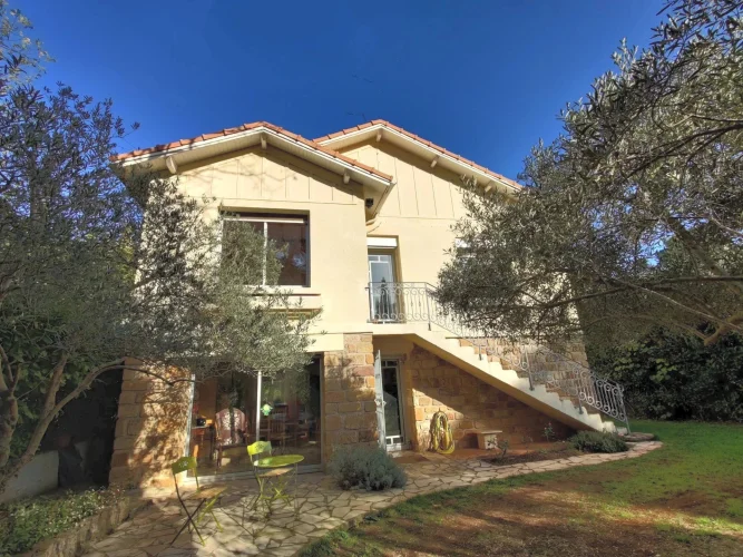 Set over three levels, this substantial 4 bedroom family home is set within its own private Mediterranean style garden that it fully enclosed/ fenced with an electric gate. The ground floor features a large and luminous open plan living and dining area; perfect for family gatherings and to relax and enjoy life in Southern France. A kitchen featuring granite countertops and backsplash with a substantial pantry also provide further living space for this historic home. There is also a ground floor WC.