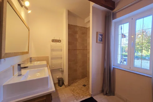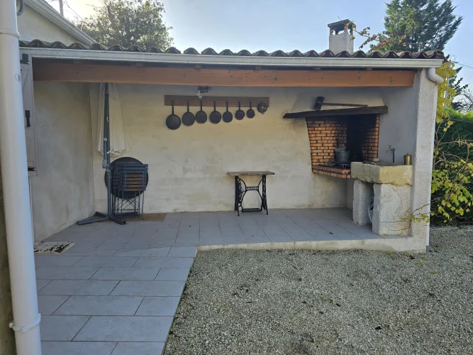 House 2: Convivial house with terrace overlooking a garden with swimming pool. Ground floor: Large open-plan living area with fitted kitchen, dining room and sitting room. Shower room with WC, utility room and bedroom. First floor: Two bedrooms, one of which is a master suite with en suite bathroom. Outside: Terrace with fixed barbecue for entertaining.