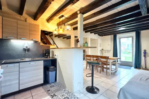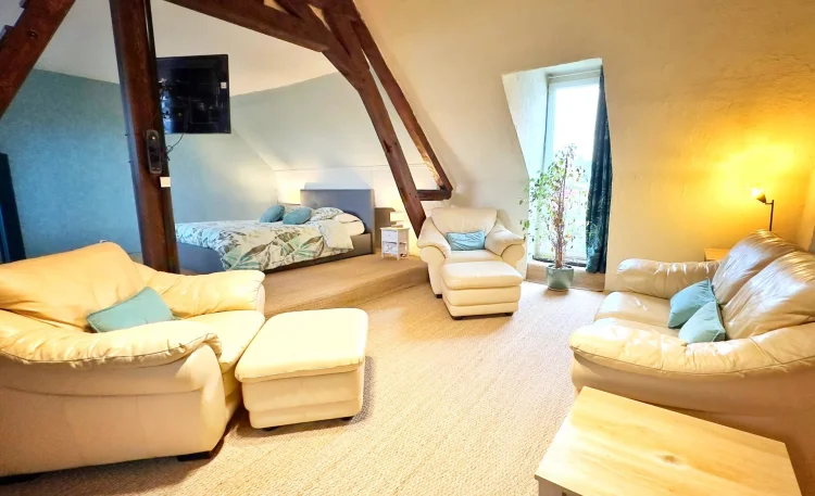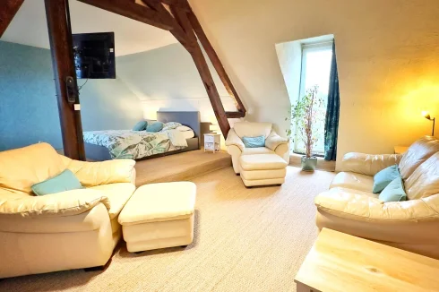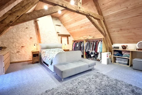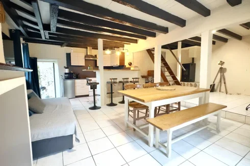 This characterful home was once two adjacent cottages. Now united, it can be enjoyed as a large family home, intergenerational living offering independence, or it could be subdivided again to provide a rental gite (subject to permission). All local amenities are just a few steps away in this friendly and lively village.