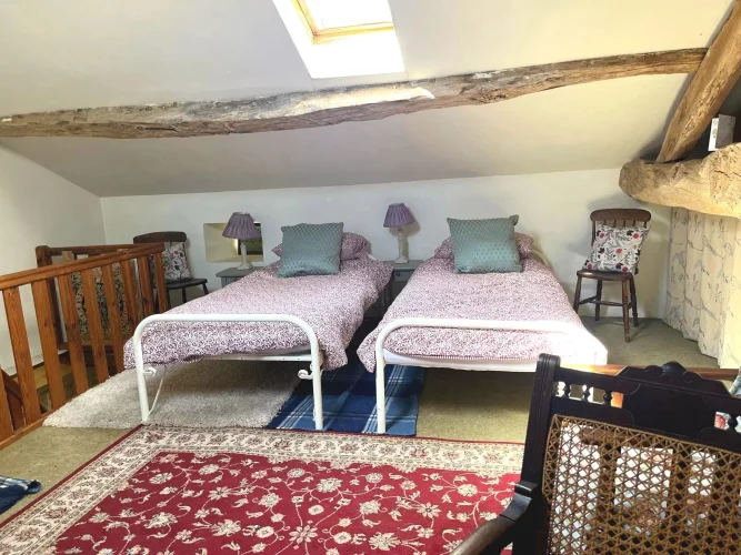 A characterful staircase, reminiscent of times gone by, leads to the first floor, where you'll find the principal bedroom featuring a roll-top bath and original fireplace niche, a second bedroom, and a stylish modern shower room. The top floor is currently arranged as a third bedroom, offering additional space for guests.