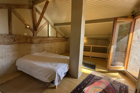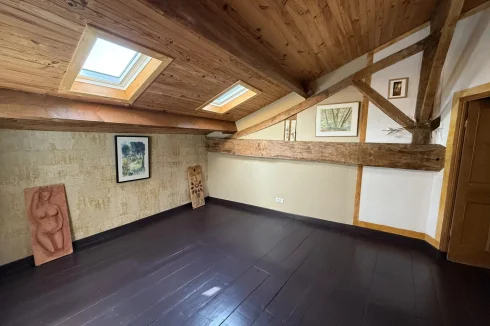- The main bedroom suite includes a bathroom and built in wardrobes, with a glazed door opening out on to a 28 m² sun terrace, renovated in 2023.